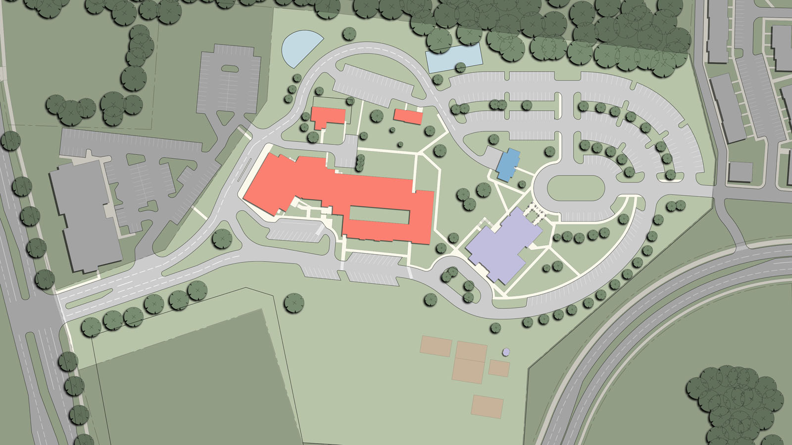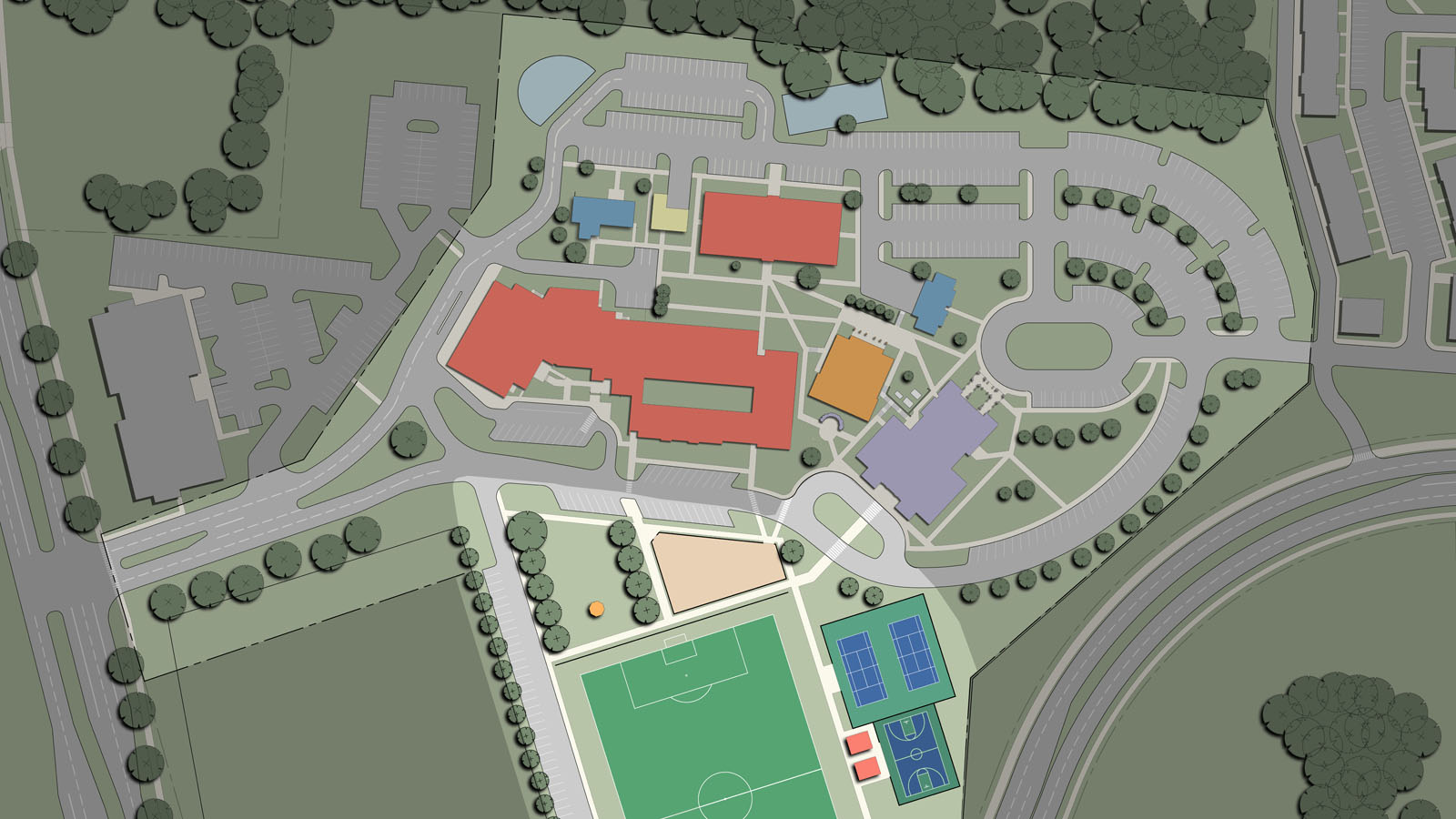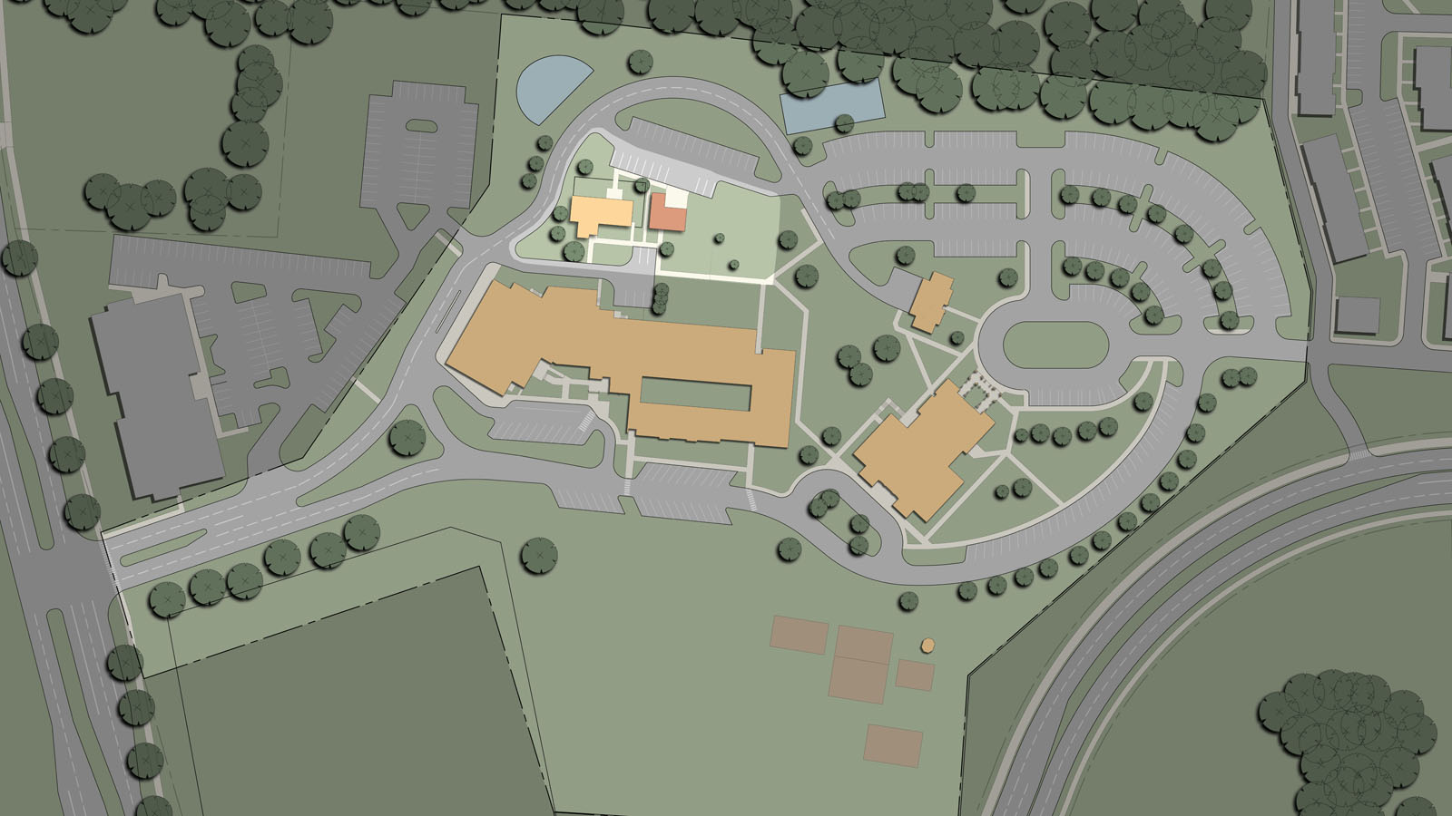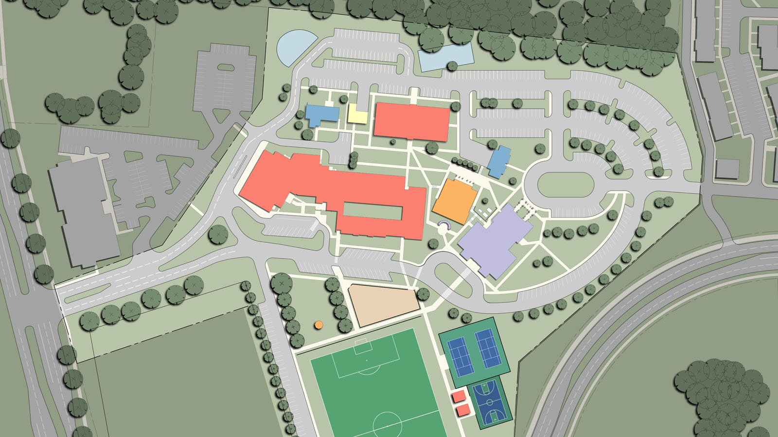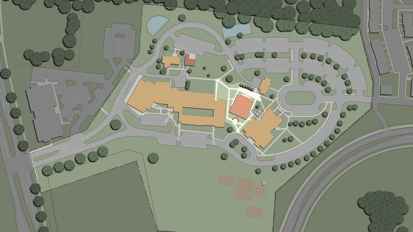 The parish consists of an 800-seat church, rectory, former convent and a K-8 school of 225 students which have all reached capacity. The master plan provides a campus master plan to evaluate the best options to pursue to expand and reorganize the campus. The plan was completed after a thorough survey, documentation and analysis phase, a draft program review and the drafting of a final master plan.