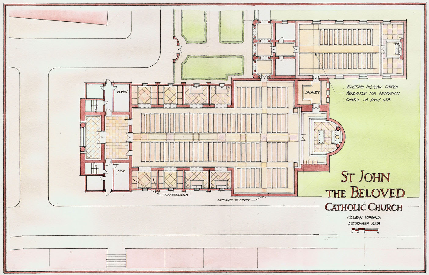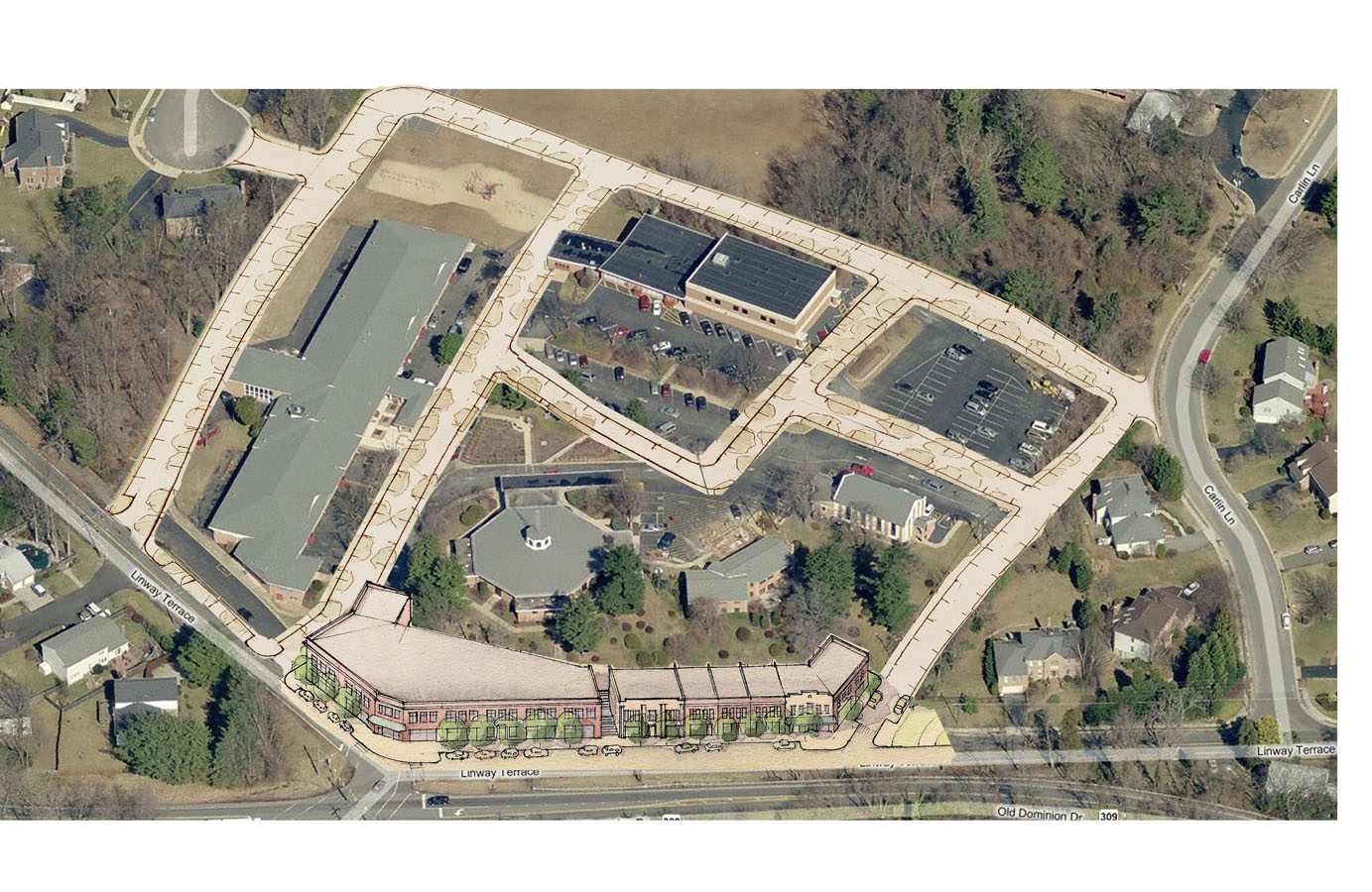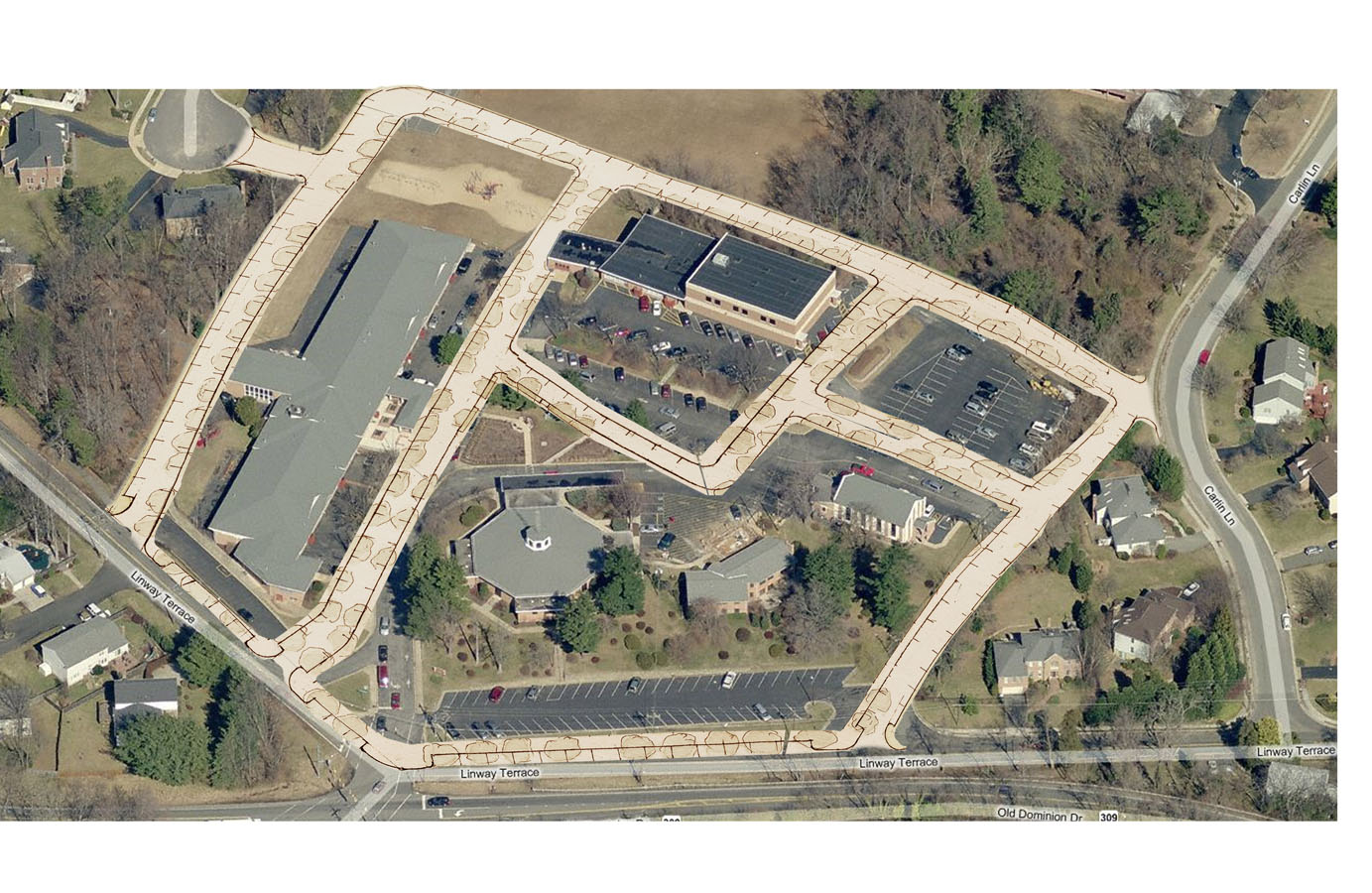 The existing conditions of this suburban parish suffer from a typical overabundance of parking lots to actual usable buildings.