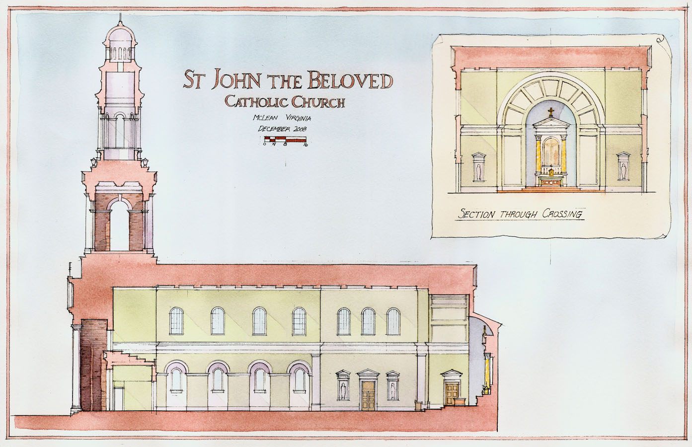 By utilizing street parking and a small parking deck, the parking count would not be diminished, but also would reduce demand for parking by allowing parishioners to live on site. By having mixed use retail and commercial and a small grocery store, the demand to drive would be reduced.