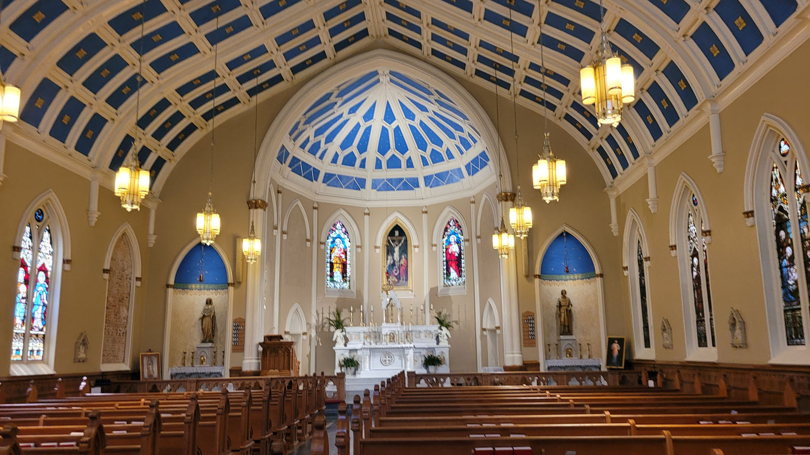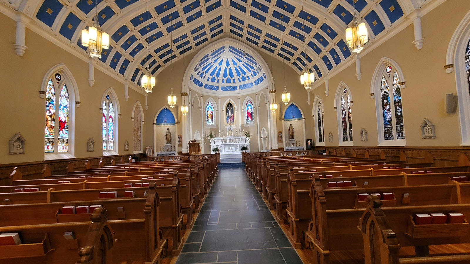 The project was initiated by a previous pastor in 2014 and involved the management of several small steps to achieve the complete restoration of the interior of the church.  The scope of the project consisted of consulting the parish on selections of materials, colors and connecting the parish with artisans to execute the final design.