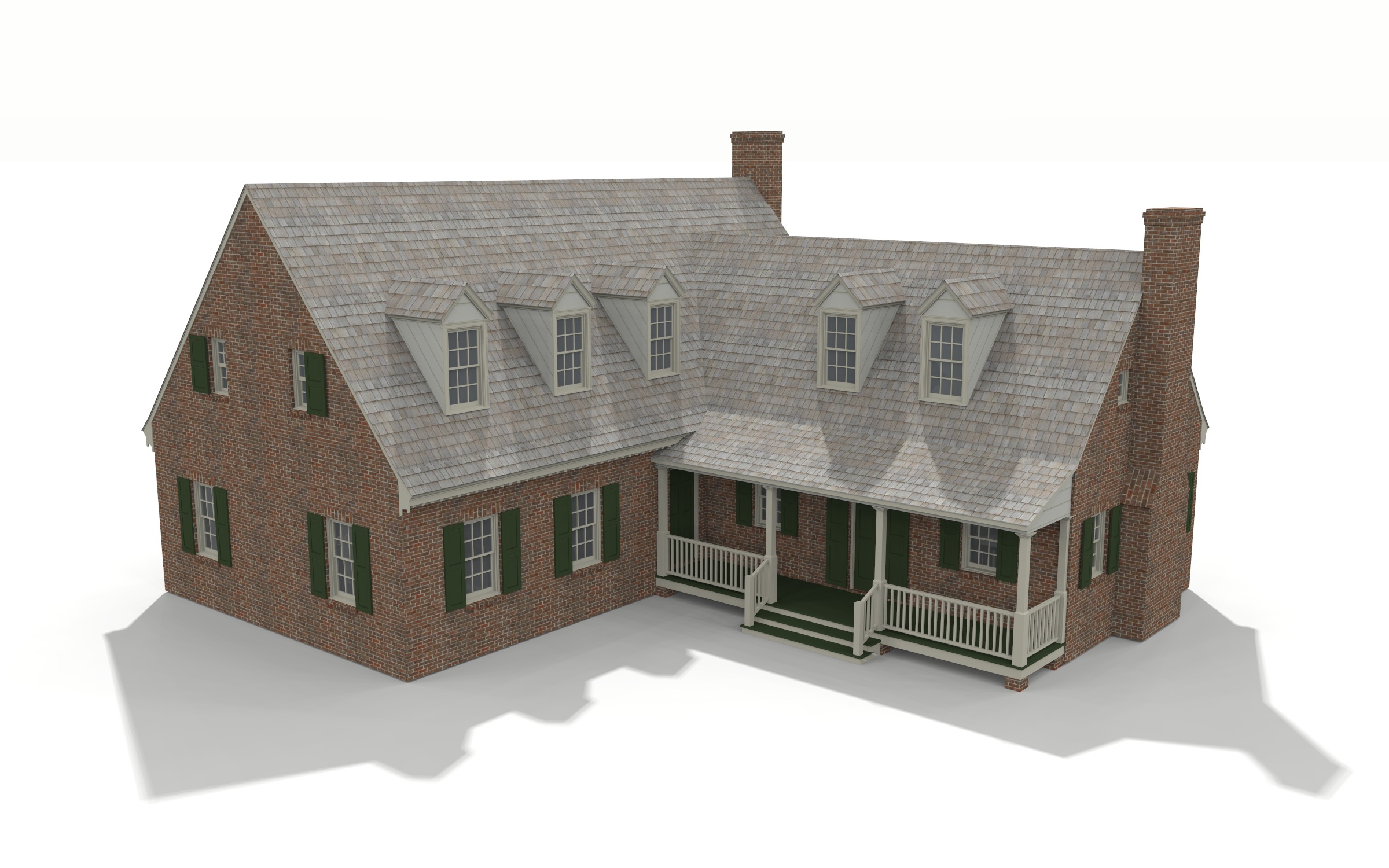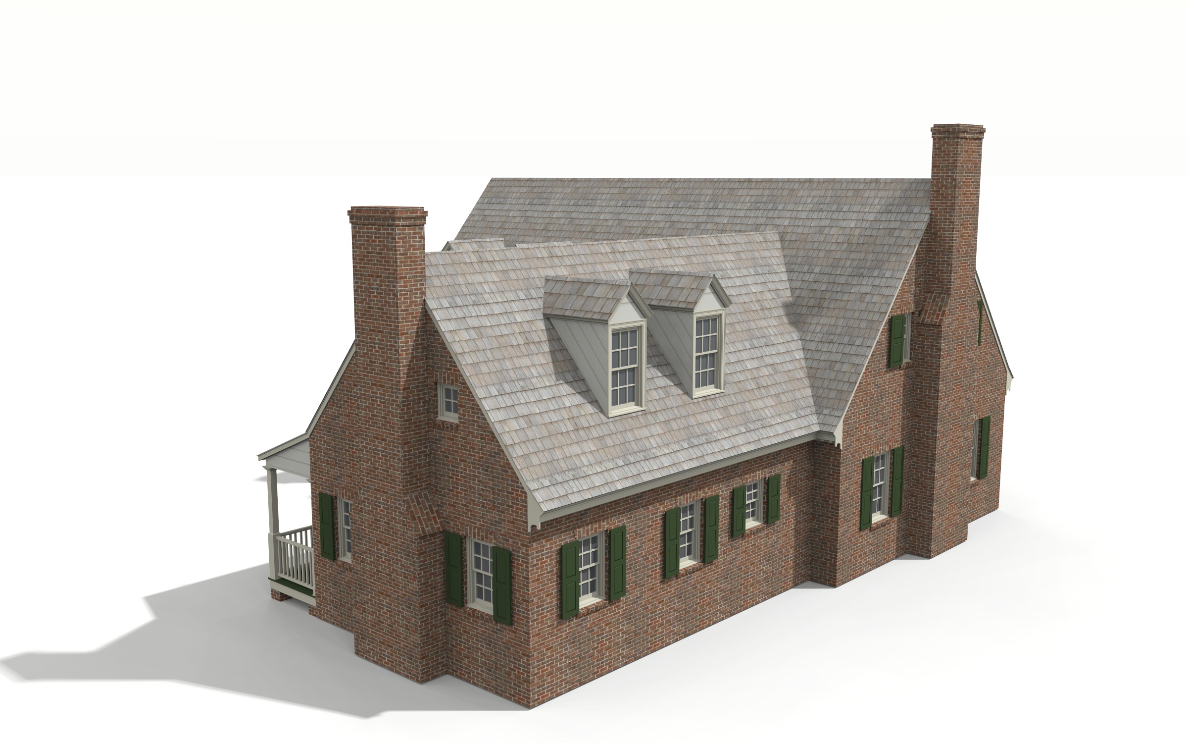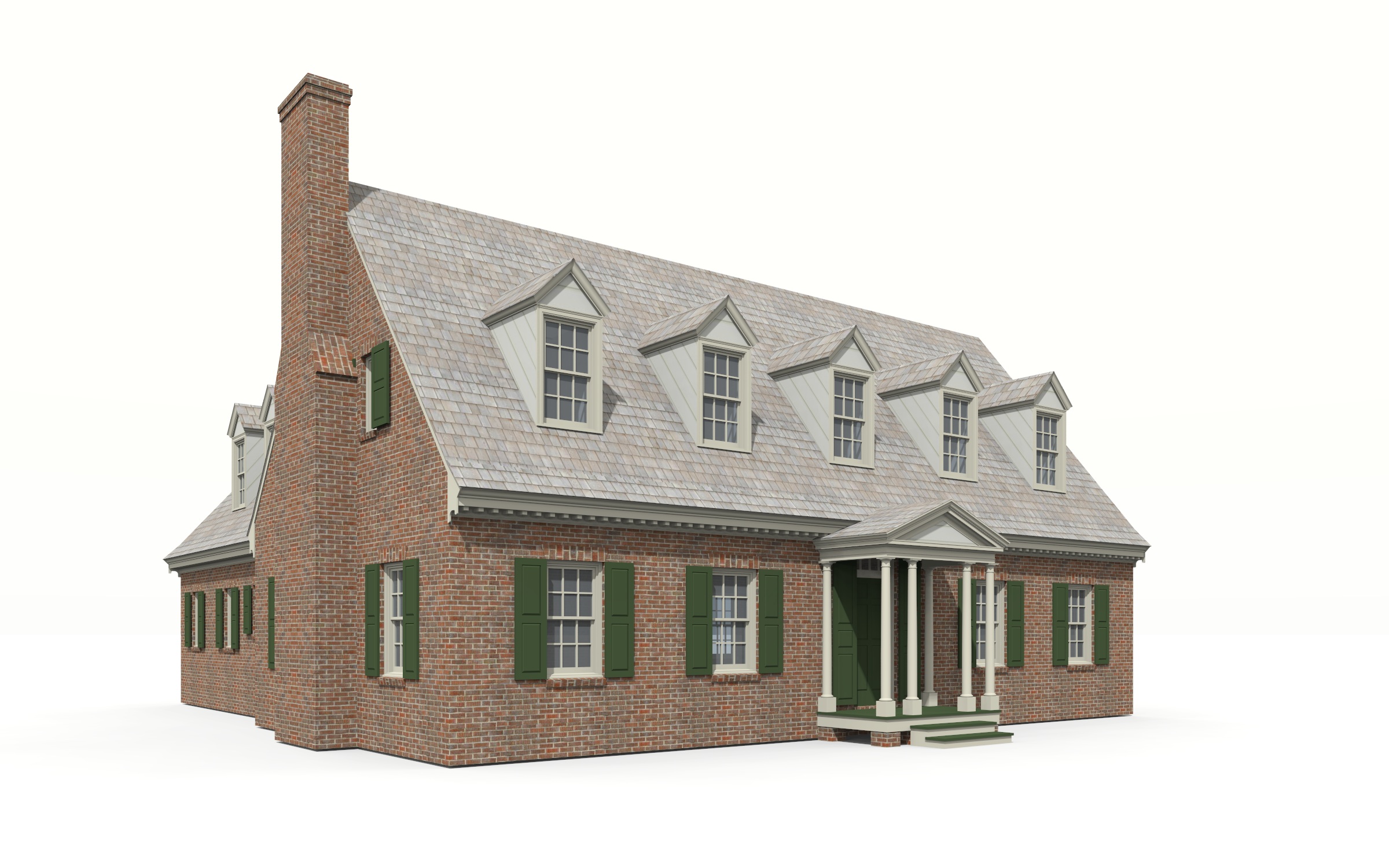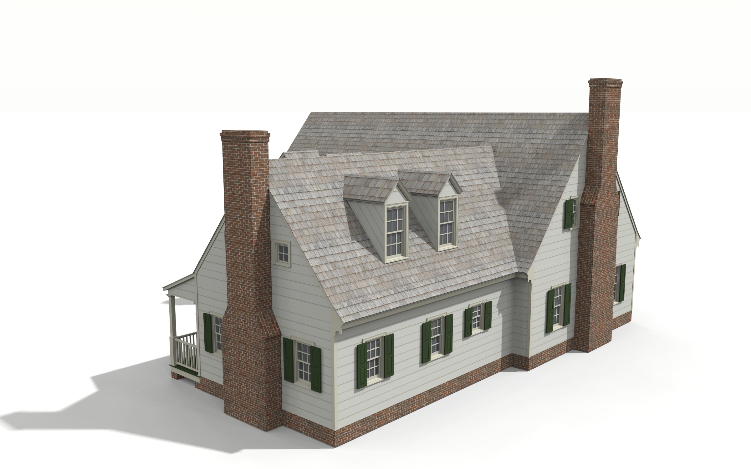 This medium sized 3 bedroom house in a Tidewater Virginia style is available in brick or clapboard exterior. The first floor has a open dining room leading to a full kitchen and living room. The upper floor has two standard sized bedrooms with a shared bath and an ample master suite. This would be an ideal home for a small family looking for a dignified but simple house.