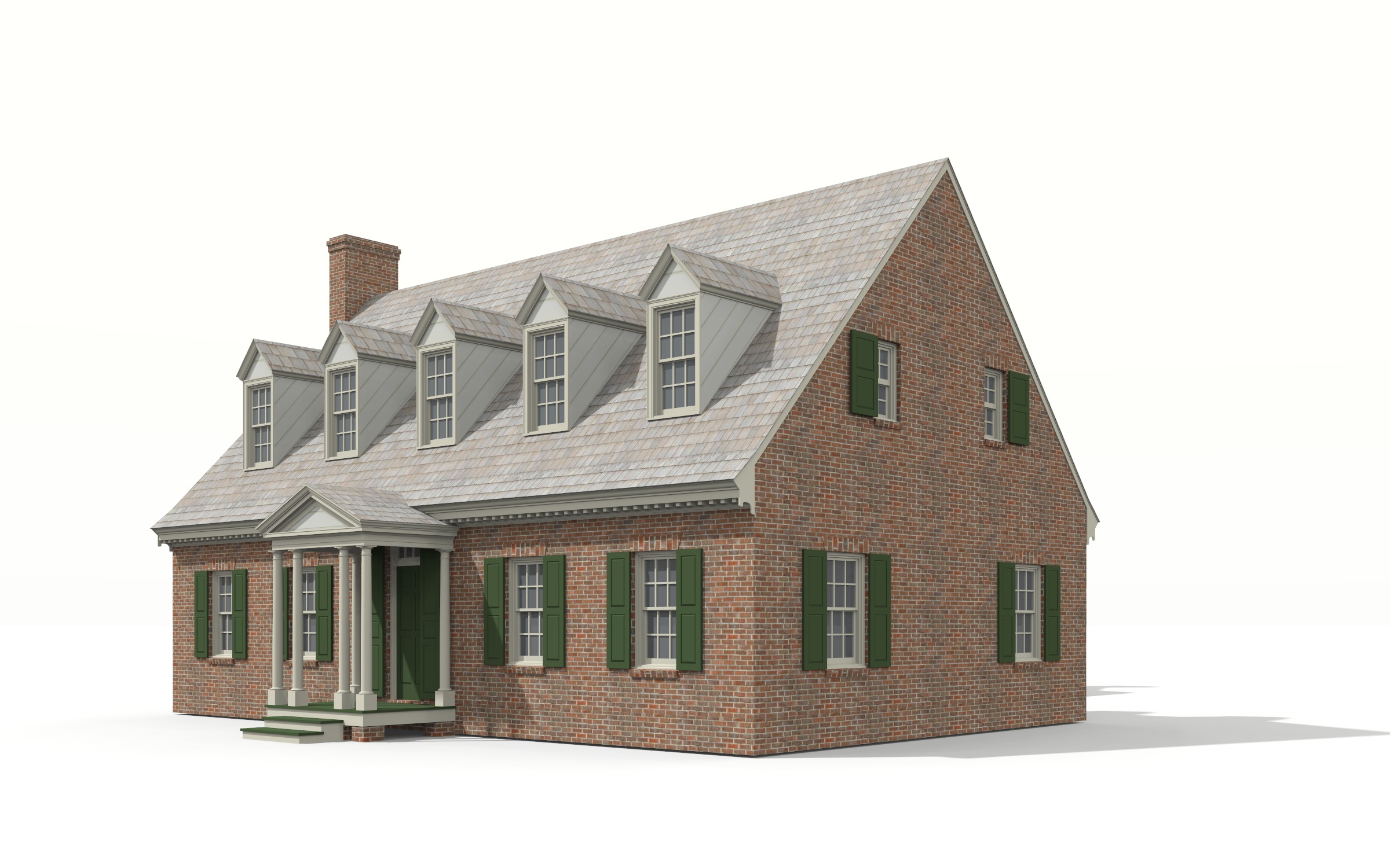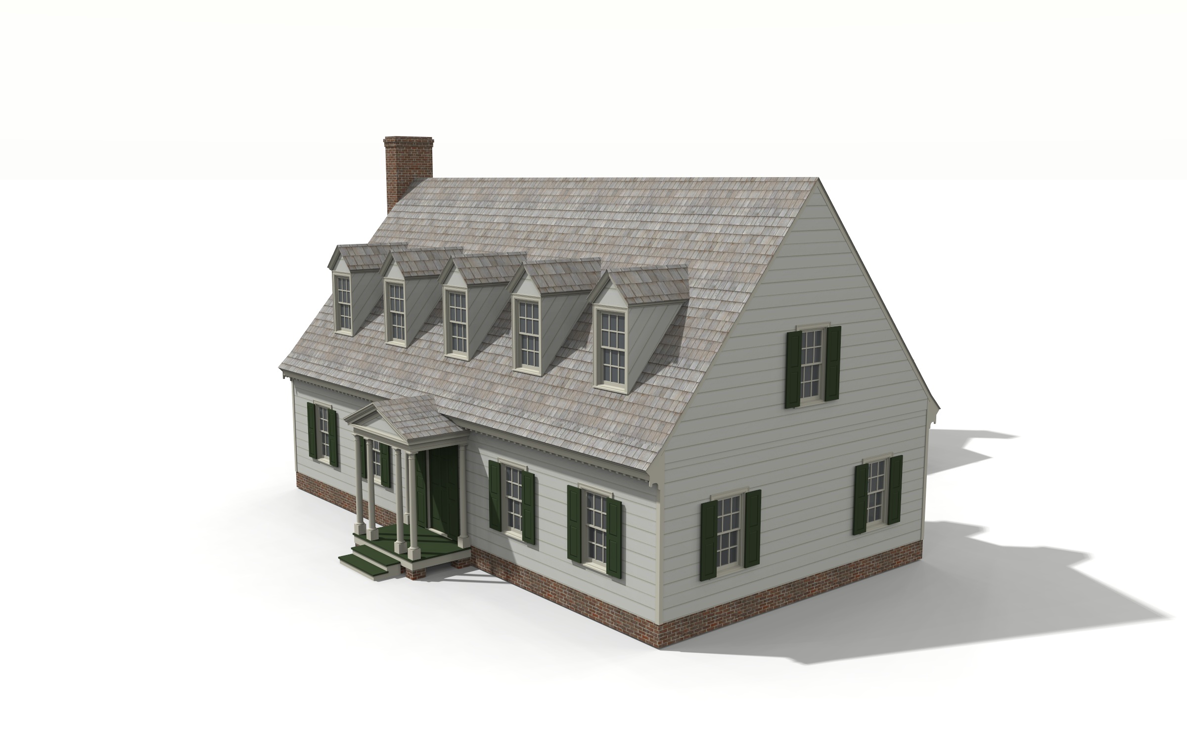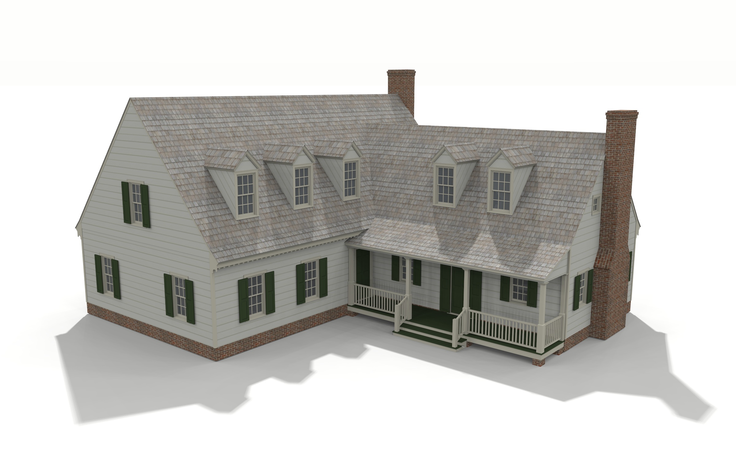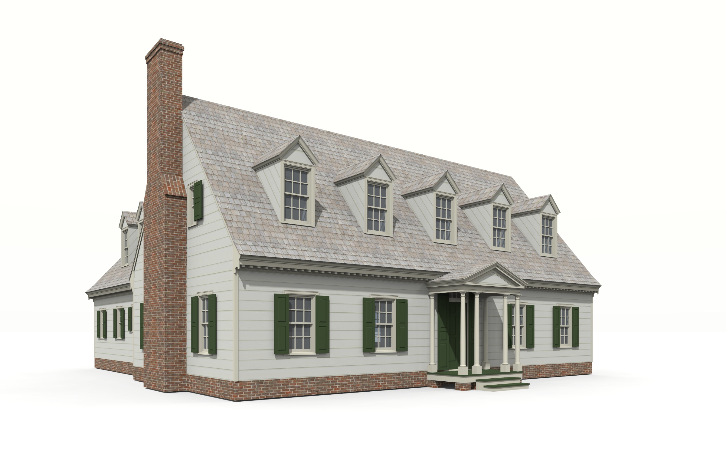 This medium sized 3 bedroom house in a Tidewater Virginia style is available in brick or clapboard exterior. The first floor has a open dining room leading to a full kitchen and living room. The upper floor has two standard sized bedrooms with a shared bath and an ample master suite. This would be an ideal home for a small family looking for a dignified but simple house.