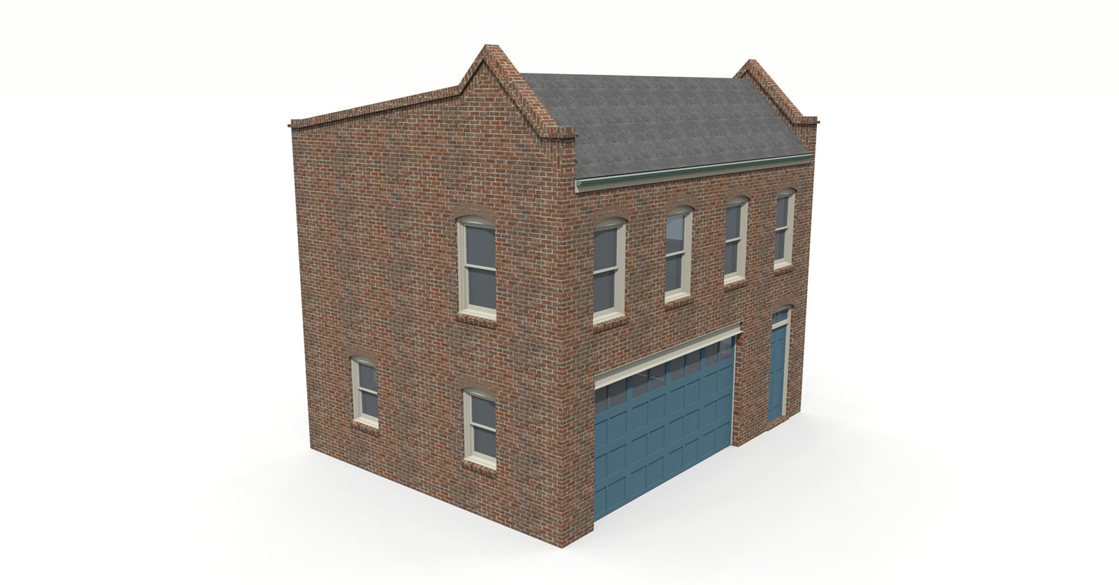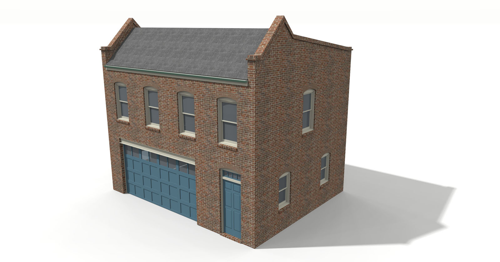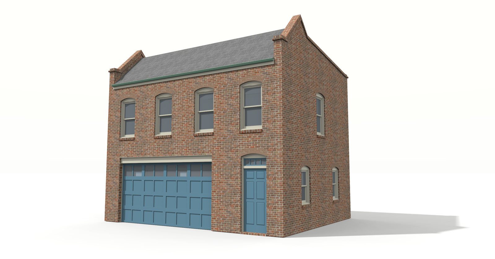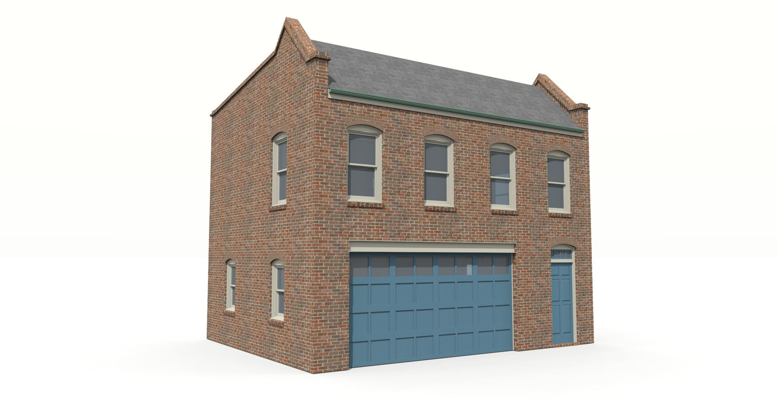 A medium-sized carriage house in a traditional Richmond Brick style. The garage has a wide standard 16 ft door and a half bath and ample work space. The apartment has a small kitchen / living room, and a small master suite. This brick carriage house makes an ideal accessory dwelling unit and is designed to fit a 35 foot lot but can fit as narrow as a 28 foot lot.